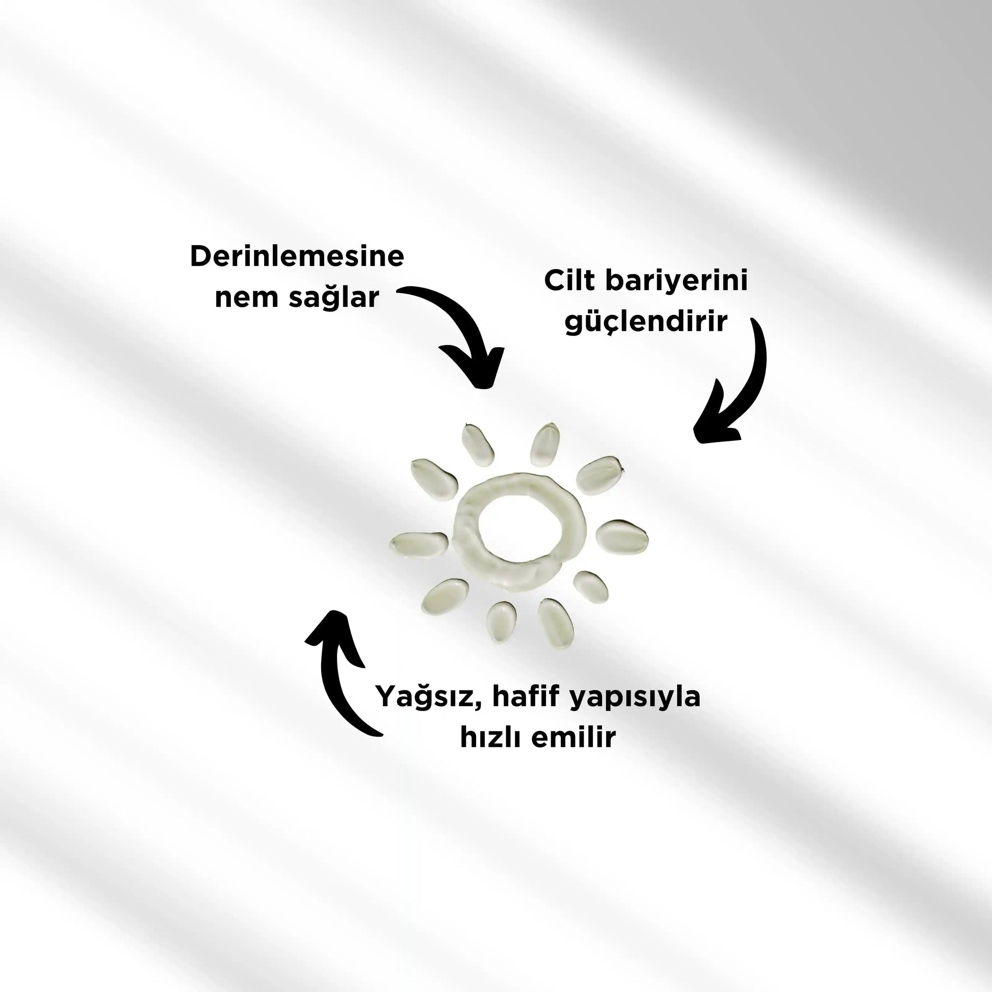 Cilt bariyerini güçlendiren, nem kaybını önleyen ve pürüzsüz bir görünüm kazandıran özel formül.
