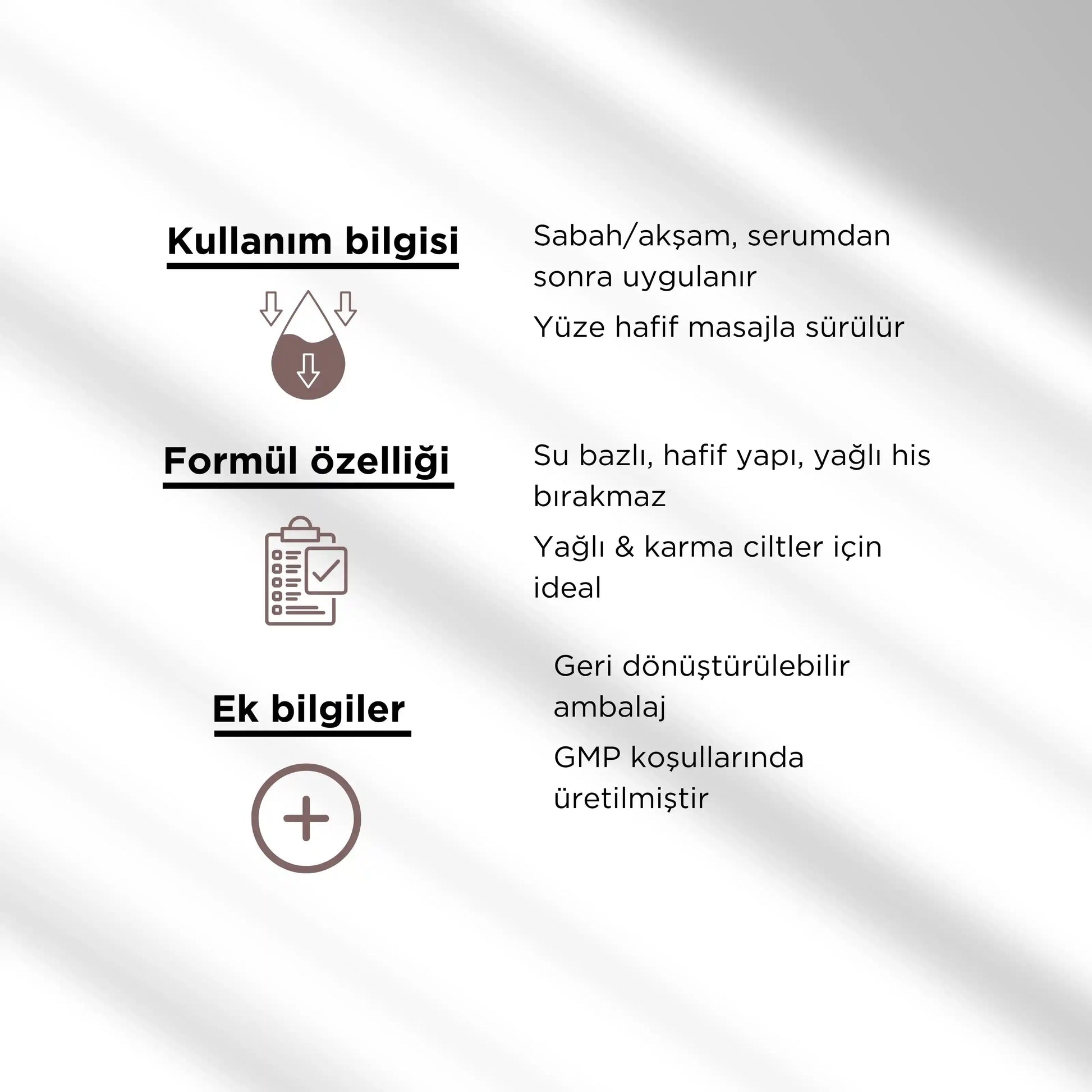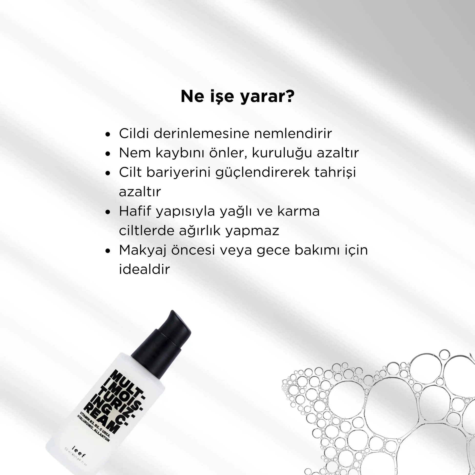 Yoğun his bırakmadan güçlü nemlendirme sağlar, makyaj altı için de idealdir.